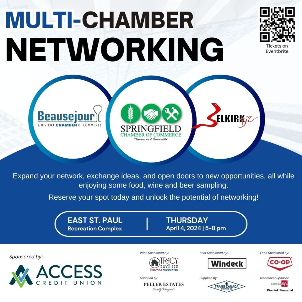 Join the Beausejour and District Chamber of Commerce, Springfield Chamber of Commerce, and Selkirk Biz for a multi-chamber networking event on Thursday, April 4 at the East. St. Paul Recreation Complex.